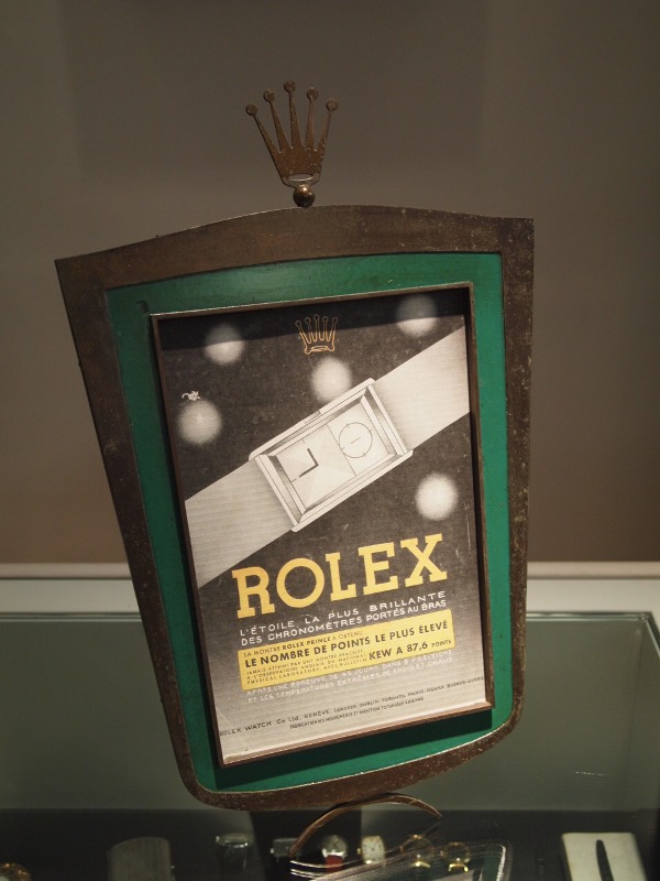 An extremely rare & nice original vintage Rolex window display. Circa 1960s but perfect to showcase any picture, poster or advertisement of your favourite Rolex watch. VERY NICE !!! The beautiful display looks good on its own but also doubles up as a poster or picture frame. Made of gilt brass, partially painted in green soft enamel. Large Rolex crown at the tip of the display. I just love the cute little beautiful crescent shape base, which raised the display by a few inches, giving the charming effect of a pair of high heels on a fashionable lady... adding jewel to the crown. The back of the display is lined with a single block of wood, originally cut & tailor-fitted into the brass frame, with a flexible wooden easel that also acts as the holder of the hinged-opening to insert your favourite picture or poster. The wooden element enhanced the display with a very nice, rich & textured quality. 2 Original vintage hinges and 3 movable stoppers with many original tiny nails that hold the frame & the wood panel together, all with nice aging/patina. The easel & the "high heels" allow the display to tilt at a very nice angle, allowing perfect & proud visual connection when displayed on the counter or table. Measuring 42.5cm & 26.5cm. Overall very very very nice vintage condition with time related natural aging on the wood, gilt brass, enamel (a tiny repair at the top left corner of the green enamel section, which adds vintage charm & evidencing its age). An important, rare & nice historical Rolex display item perfect for collector of all ROLEX memorabilia.......