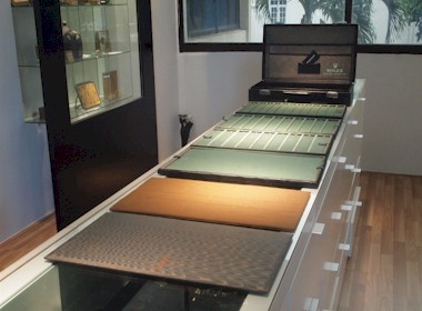 box cover on the leather.