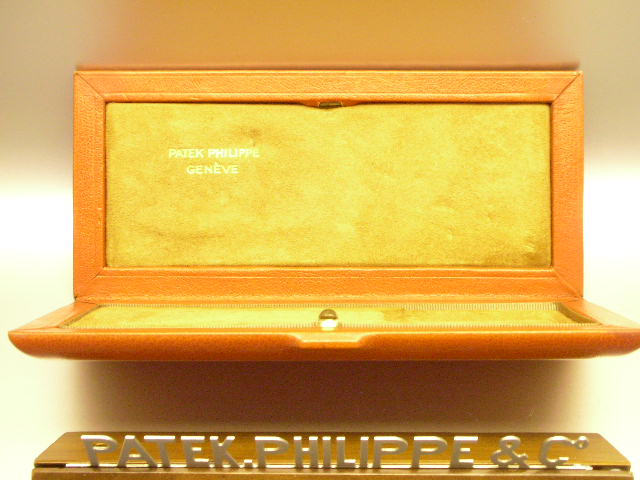 Same as those used for some vintage Patek pieces in the Patek Museum. The similar type of box is also used in Patek’s Old watch books, that makes the whole collection so nice to see, proud to have and own. You normally see the BLACK ones this is the RARER MODEL. Personally love the vintage feel exuded by this vintage orange box. I can't explain it but if you are a serious collector, you will know exactly what I mean. Vintage PATEK Boxes are hard to find, this ORANGE one is harder !!! Search the web and see if you can find another one available for sale? exterior | TOP COVER: This beautiful box is upholstered with ORANGE leather in good condition with light surface wear. When closed, you can see the Patek Philippe’s emblem/logo fashioned in gilt color and inlaid to the box cover on the leather. Look closely and you will see the curves on the four corners of the box, sloping to the sides. ATTENTION TO DETAILS, this is. Inside of the box is lined with high quality suede like material that ensures that your beloved watch will NOT be scratched while you store it away. At the top left corner, there is a frame with letters that reads: PATEK PHILIPPE GENEVE. Look at the joining part of the box, there is not a single gap at all as the designers have laid a layer of leather to cover up all gaps they could find. Original push piece in very good condition. The backbone where the box hinges to open is in good condition.